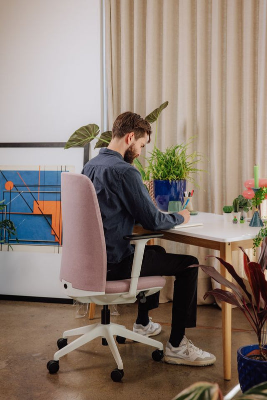 Start by adjusting your seat height. Ensure your feet are firmly on the floor. When seated, your legs should be bent at 90 degree angle.